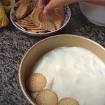 É apenas para umedecer levemente o biscoito. Espalhe estes biscoitos, já umedecidos, em uma forma ou travessa de vidro distribuindo-os uniformemente, um ao lado do outro, até completar toda a forma.
