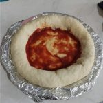 Asse a pizza 20 minutos em160°, temperatura baixa para não queimar.