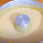 Unte uma forma redonda média com furo com manteiga e farinha de trigo e despeje a massa do bolo na mesma, levando ao forno pré-aquecido a 180ºC, deixando assar por cerca de 30 a 35 minutos.
