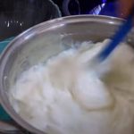 Sempre mexendo bem, adicione aos poucos o restante da farinha de trigo, até chegar ao ponto de manusear a massa para enrolar e formar o nhoque.