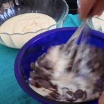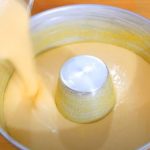 Em uma tigela, despeje esta mistura e acrescente o fubá e a farinha e com a ajuda de um batedor de arame, mexa cuidadosamente até que a massa ganhe consistência e fique homogênea.