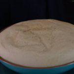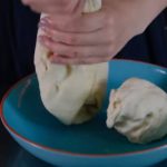 Se necessário, coloque mais farinha de trigo na bancada e/ou nas mãos, para não grudar. (Evite acrescentar mais farinha de trigo à massa).