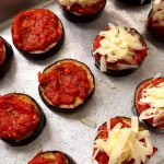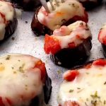 As berinjelas assadas no forno, ficam macias e nessa receita estão acompanhadas por molho e queijo derretido para deixar ainda mais saboroso essa combinação.