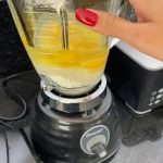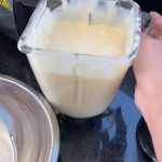 Em seguida acrescente o leite e a farinha de trigo e bata bem novamente.