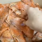 Coentro, azeite de dendê, páprica, alho, pimenta do reino, sal, limão, azeite de oliva e orégano a gosto.