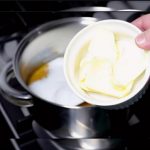 - Logo após adicione a manteiga e misture bem;